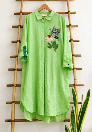 Neon Green Linen Midi Dress Rs. 9000