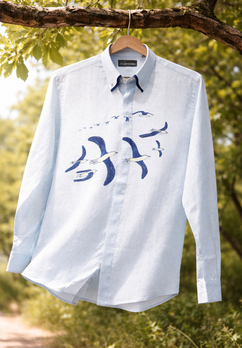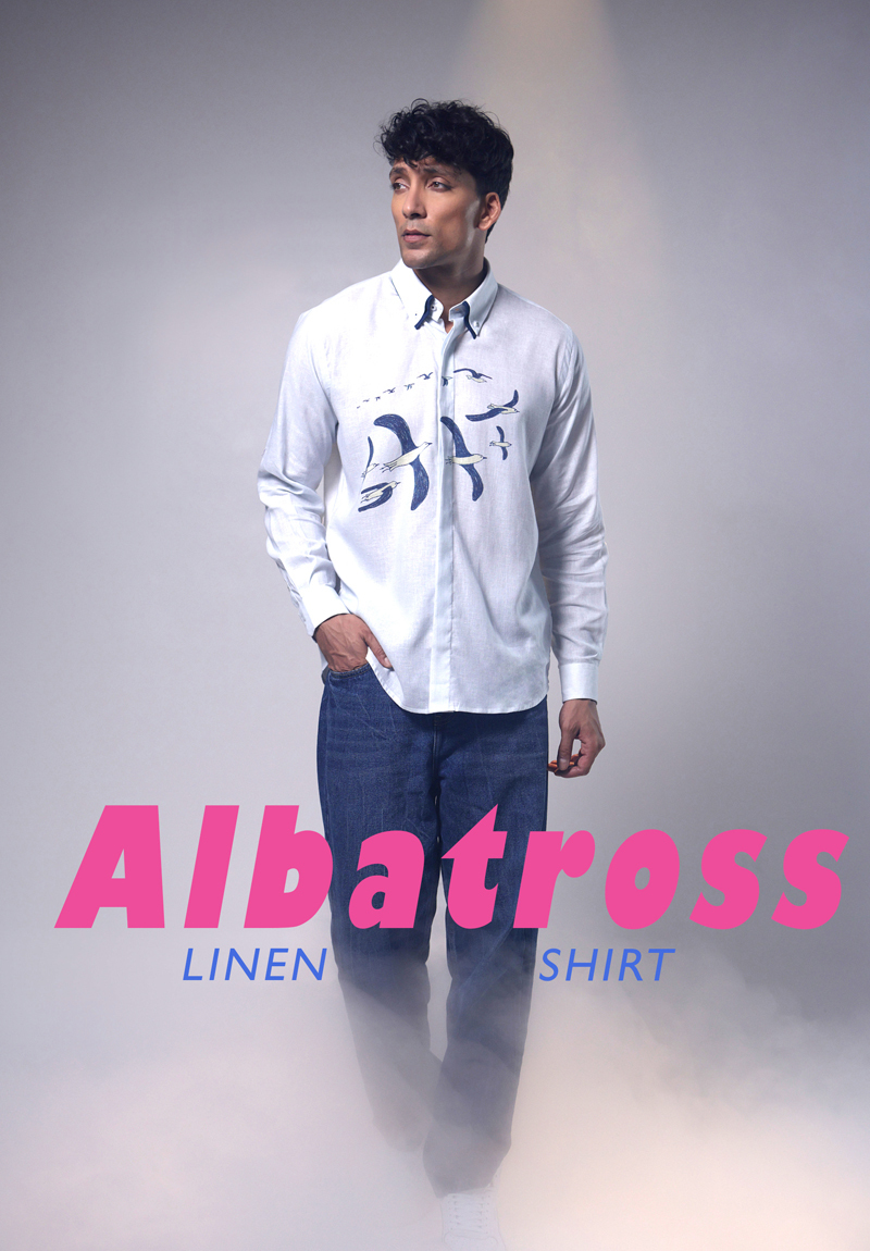 A calm, effortless print on fine linen. Light, breezy and full of quiet character. Bluish White base colour, Crafted in blended linen fabric.