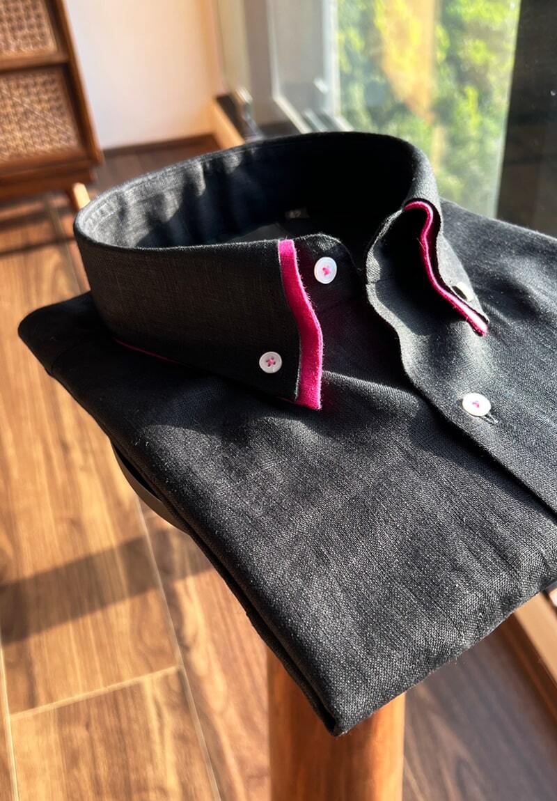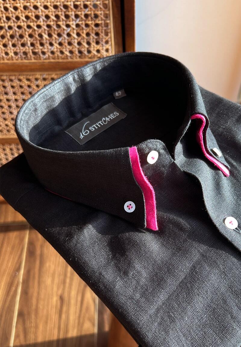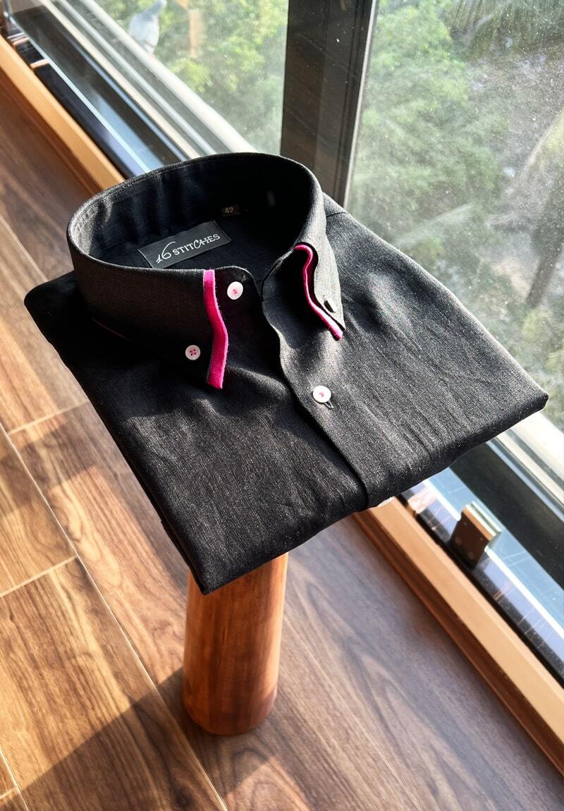 The Classic black linen shirt with a sassy twist! Made in 100% premium linen fabric.