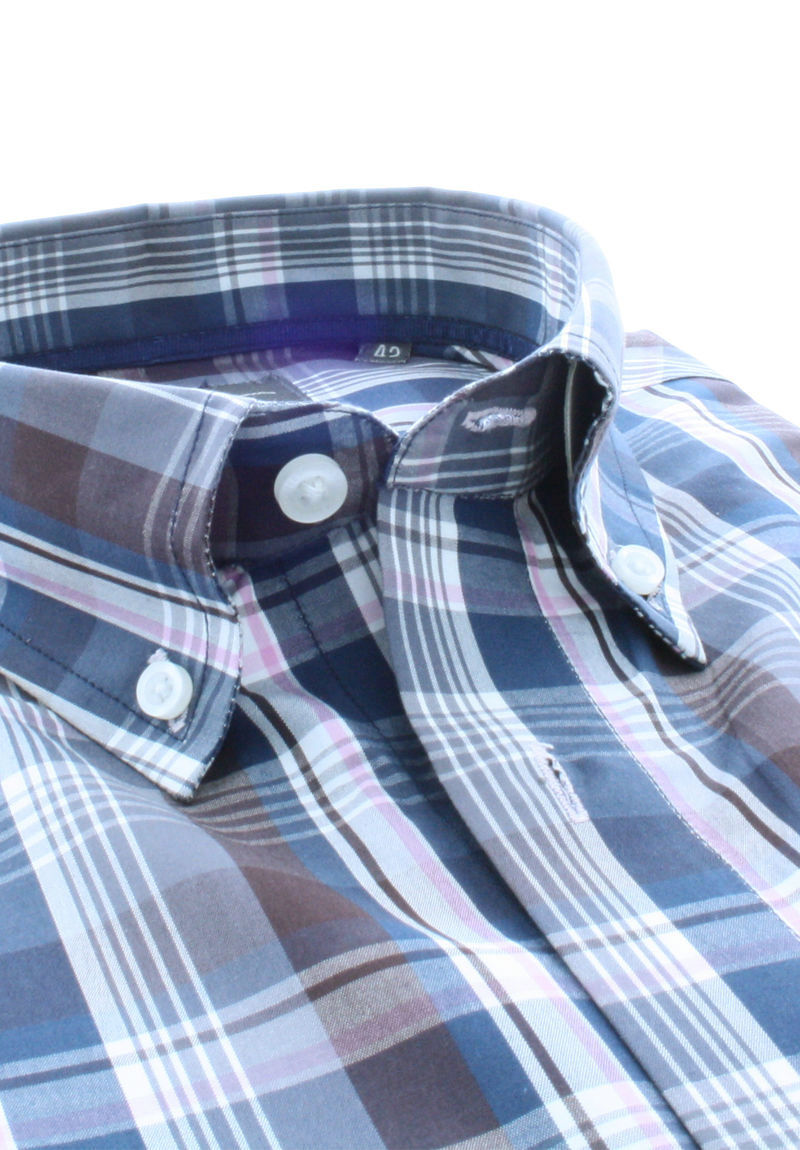This shirt is an easy choice for weekends while you're relaxing, but the button-down style gives it enough polish if your Sunday ends with going out to dinner. The oversize plaids and the pink contrast buttonholes add a touch of playfulness!