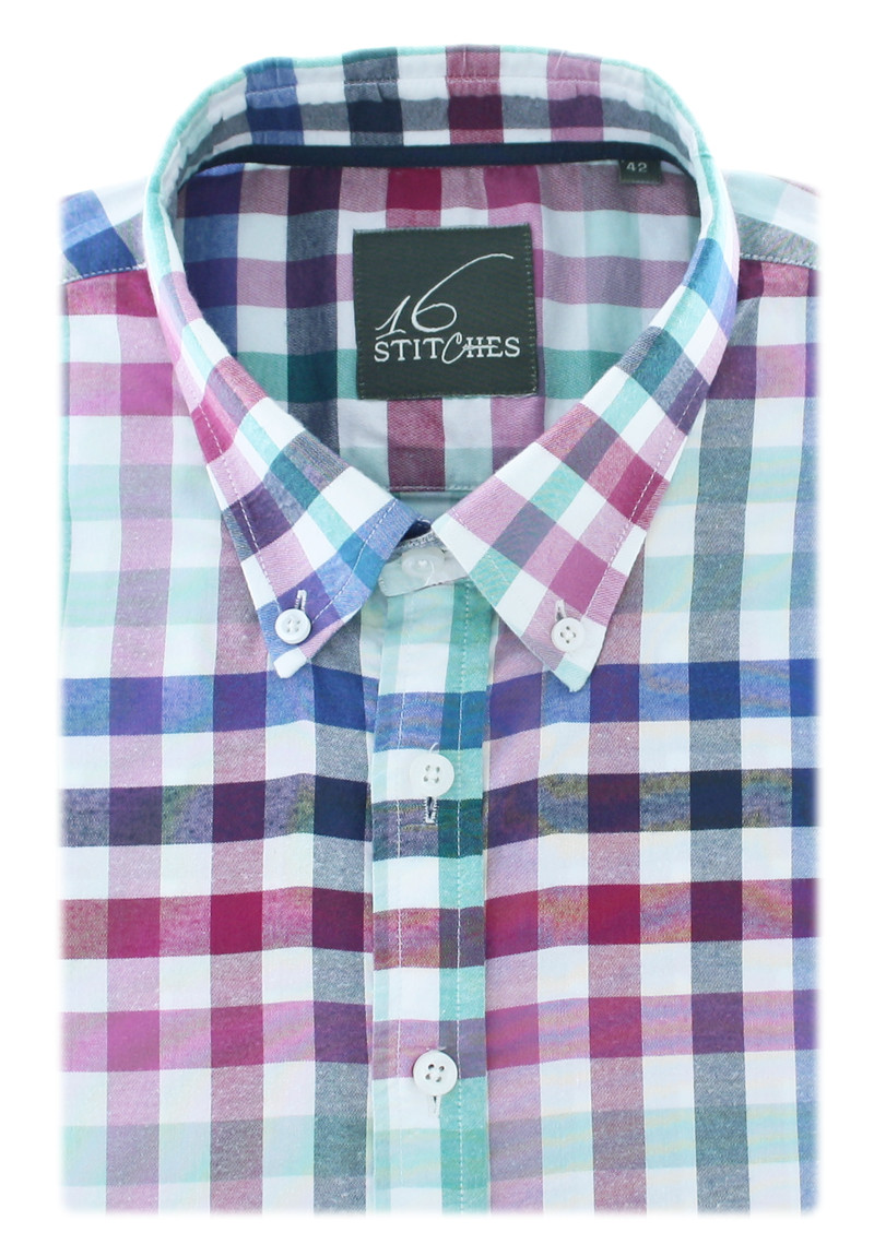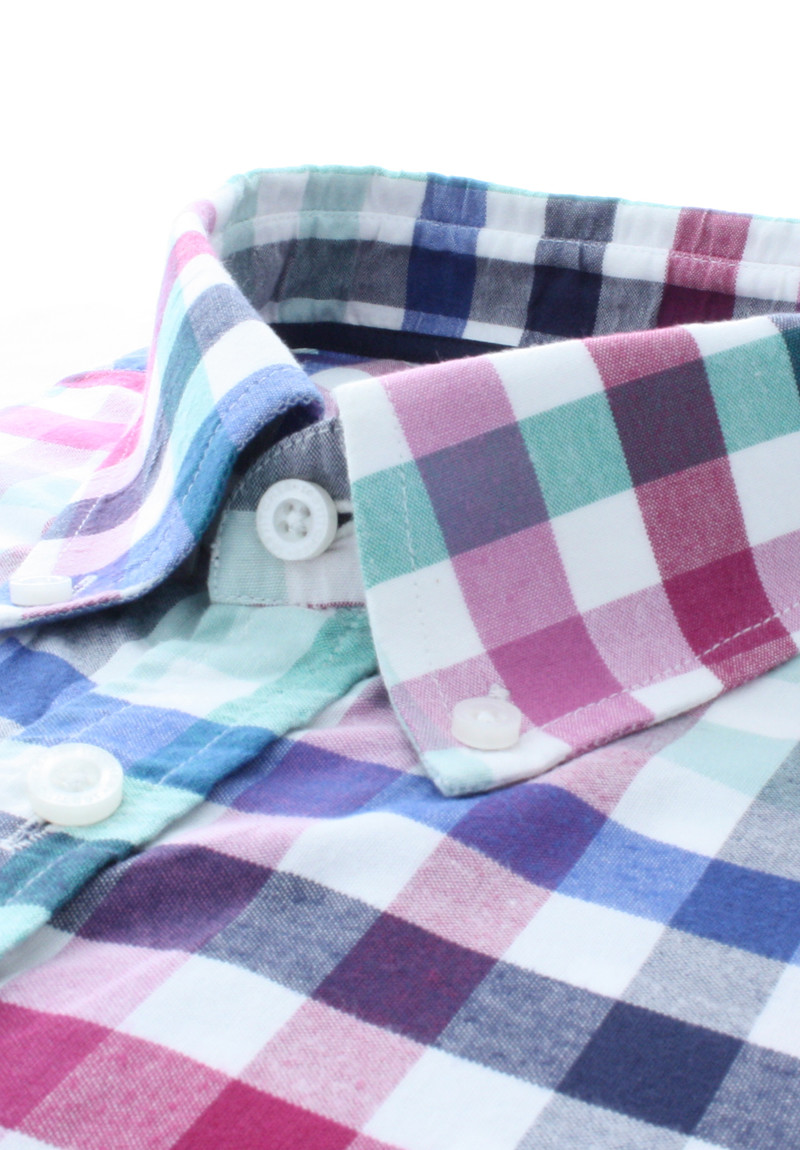 The urbane shades of this premium checks shirt will instantly brighten up your summer wardrobe. This shirt is an easy choice for weekends, styled with a neat button-down collar and single-button cuffs.