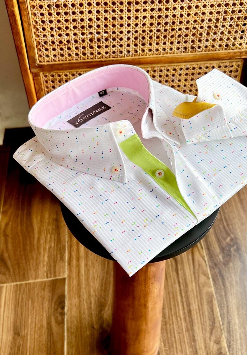 ✨ The Supernova Shirt ✨A burst of colour, a galaxy of detail. Tiny, vibrant dots meet soft pastel contrasts – creating a shirt that’s playful, polished, and anything but ordinary. ????????