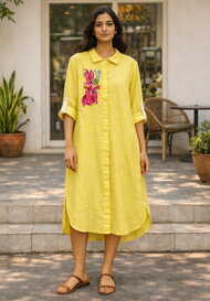 Yellow Linen Midi Dress