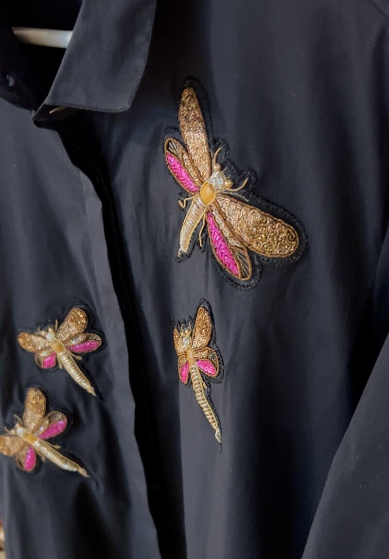 Getting into the Festive mood, Presenting the Dragonfly Dress! A straight cut long dress crafted in a deep black, most comfortable Egyptian cotton fabric with a super dressy embroidery!